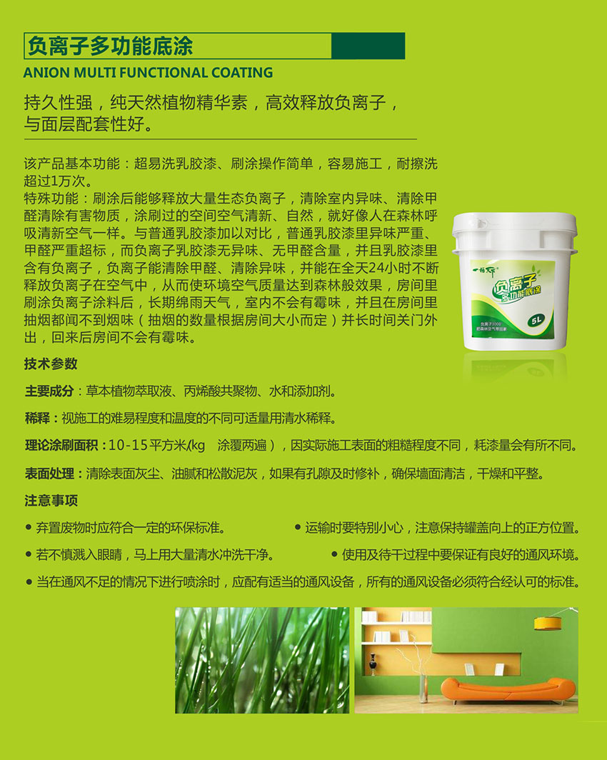 負(fù)離子多功能面涂 負(fù)離子多功能底涂 負(fù)離子多功能車(chē)內(nèi)除味劑 負(fù)離子室內(nèi)除醛精華素 負(fù)離子多功能柔光 負(fù)離子多功能絲光 負(fù)離子多功能藝術(shù)涂料 負(fù)離子汽車(chē)除味劑 負(fù)離子植物精華素